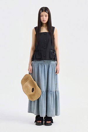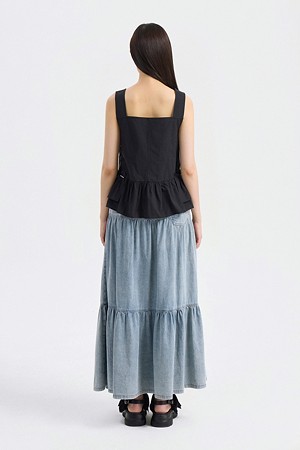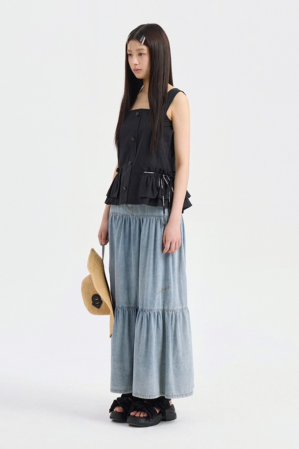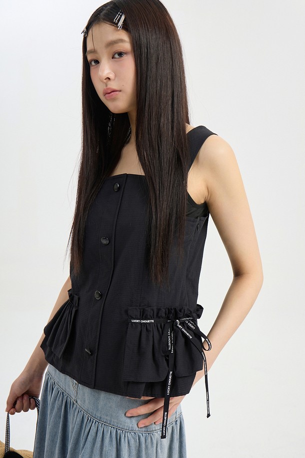 Ruffle Detail Stripe Top Blouse (black)