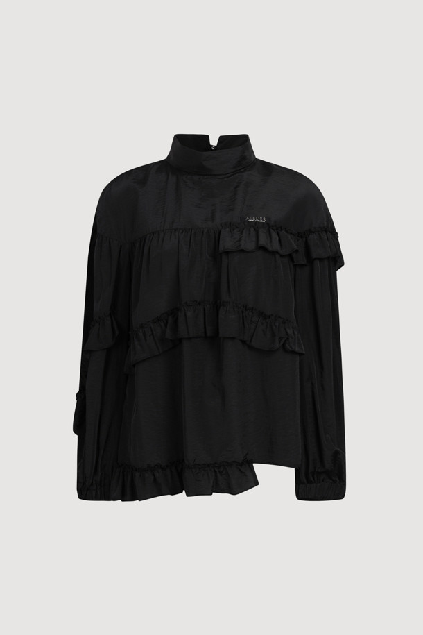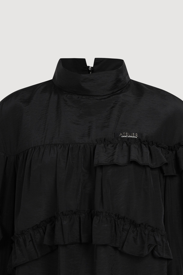 [Atelier] Frill Point Half-Neck Blouse (black)