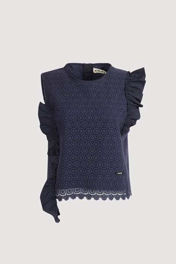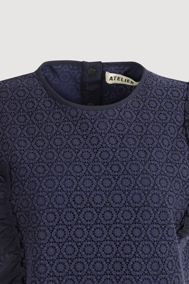 [Atelier] Frill Coloring Lace Top Blouse (navy)