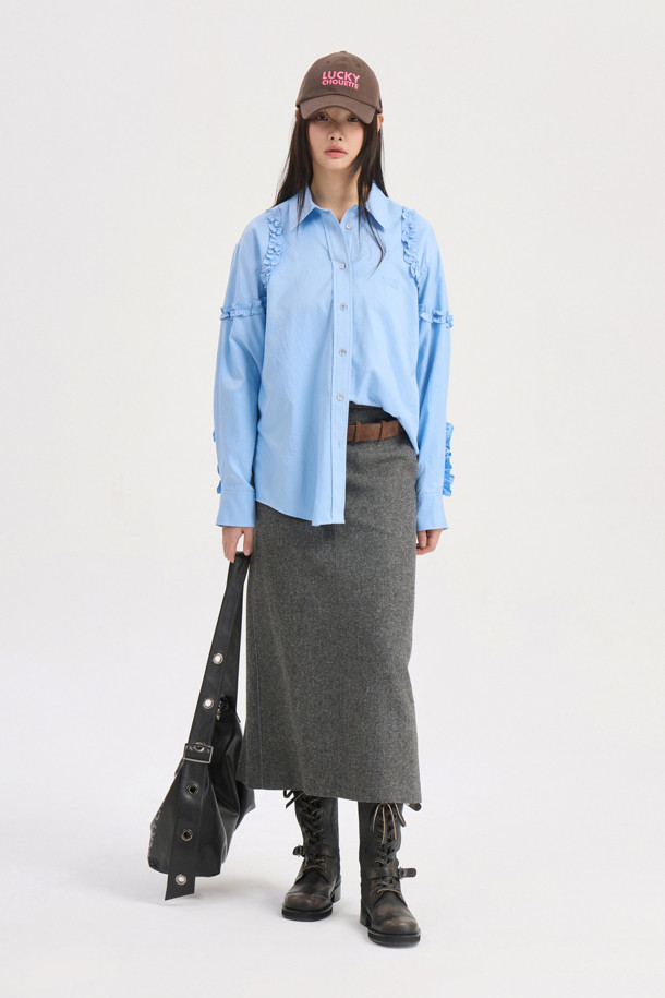 Frill Detail Shirt Blouse (light blue)