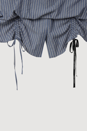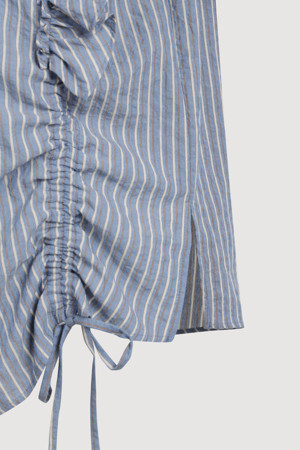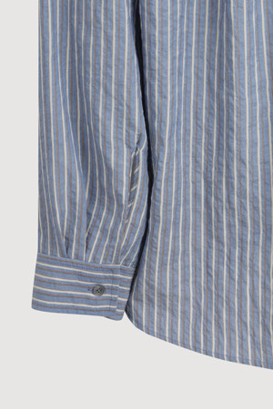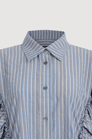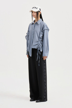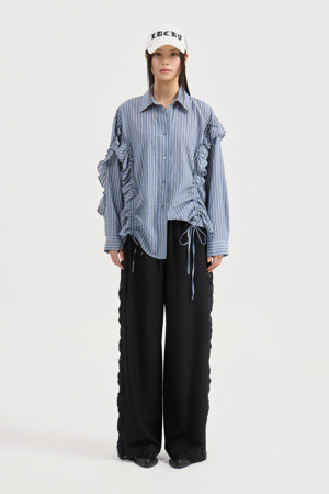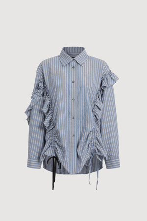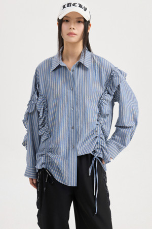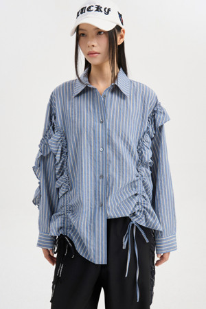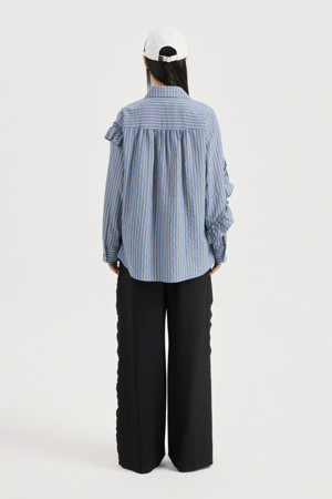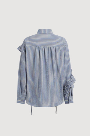[Re-Order] Shirt Style Frill Stripe Blouse (blue)