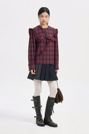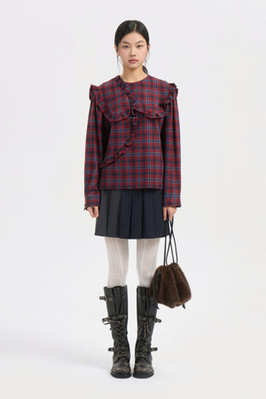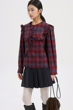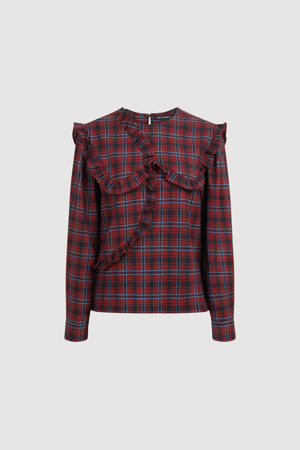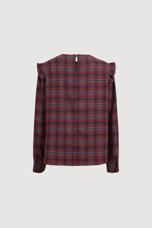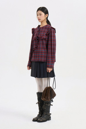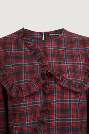 Frill Point Check Blouse (red)