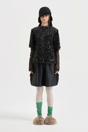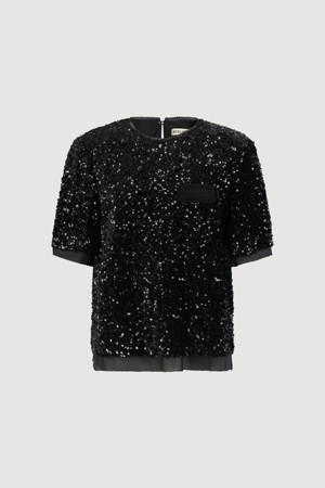 [Atelier] Spangle Half Sleeve Blouse (black)