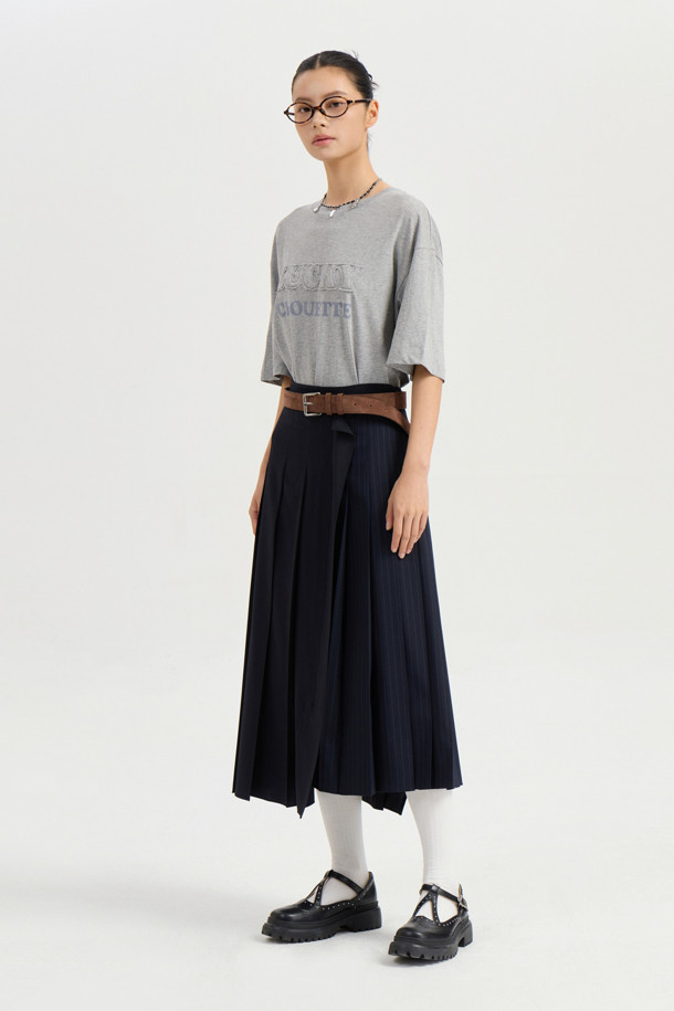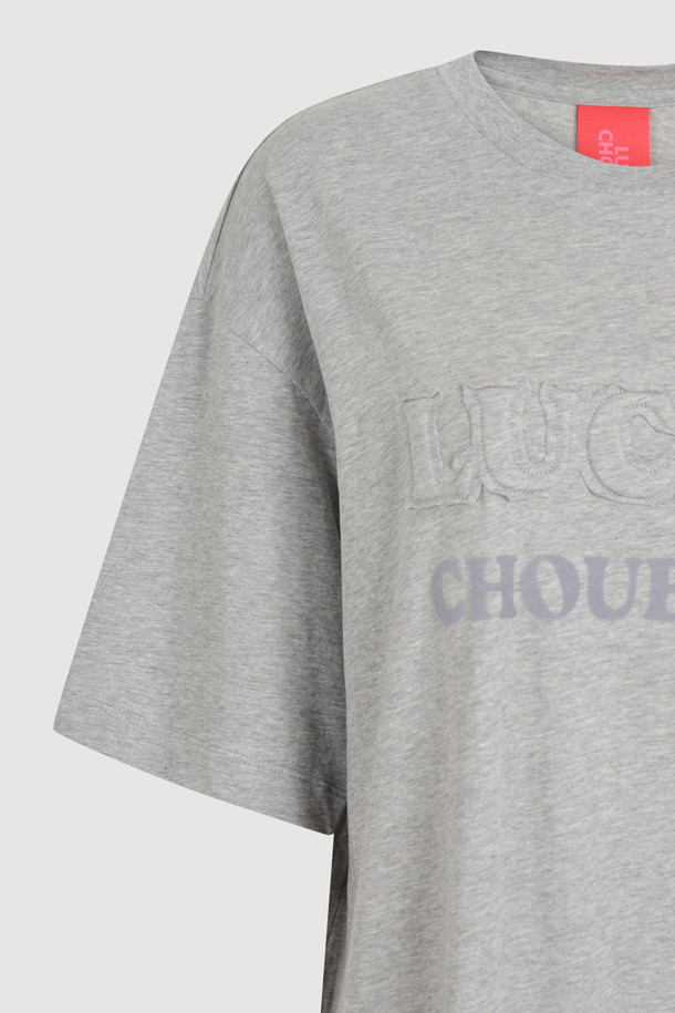 Lettering Point Loose Fit Half Sleeve T-shirt (melange grey)