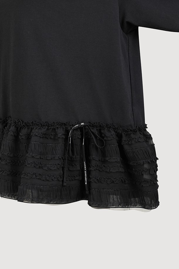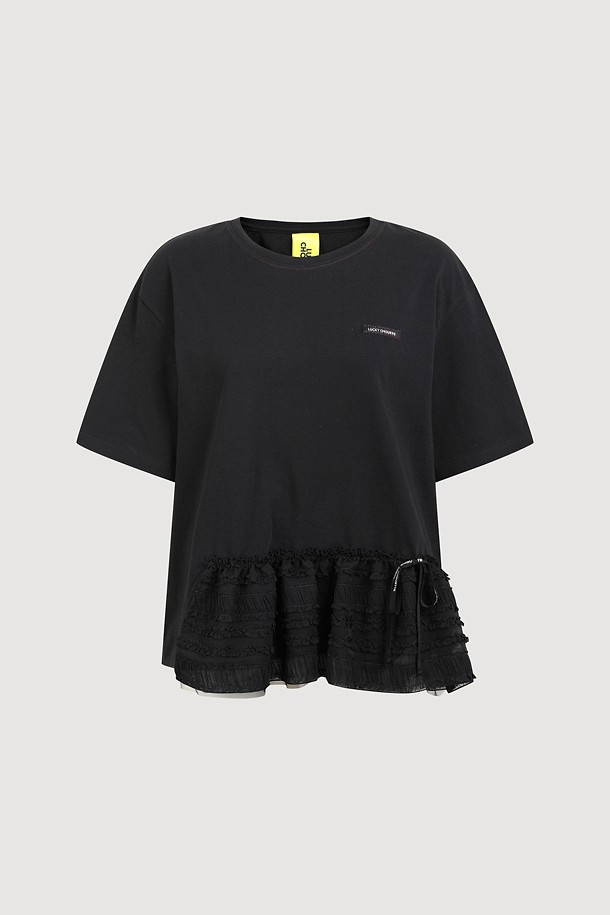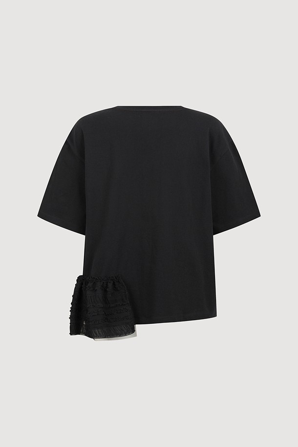 Frill Color Blend Short Sleeve T-shirts (black)