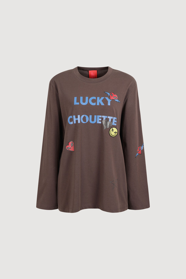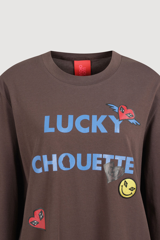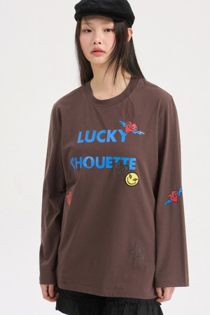 Lettering Point Loose Fit Long Sleeve T-shirt (brown)