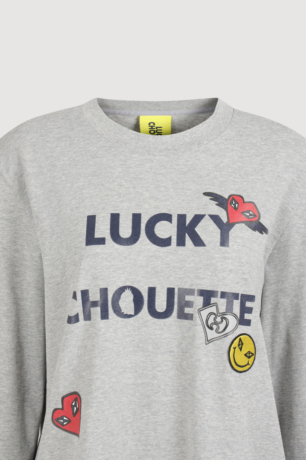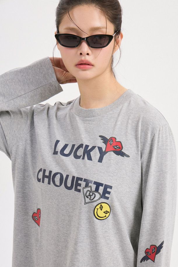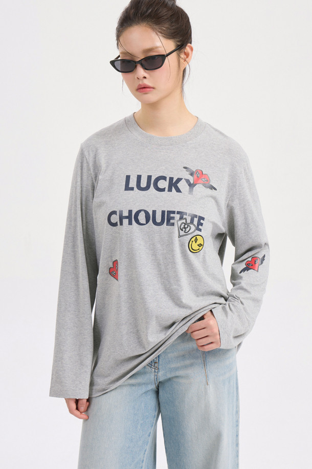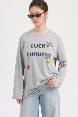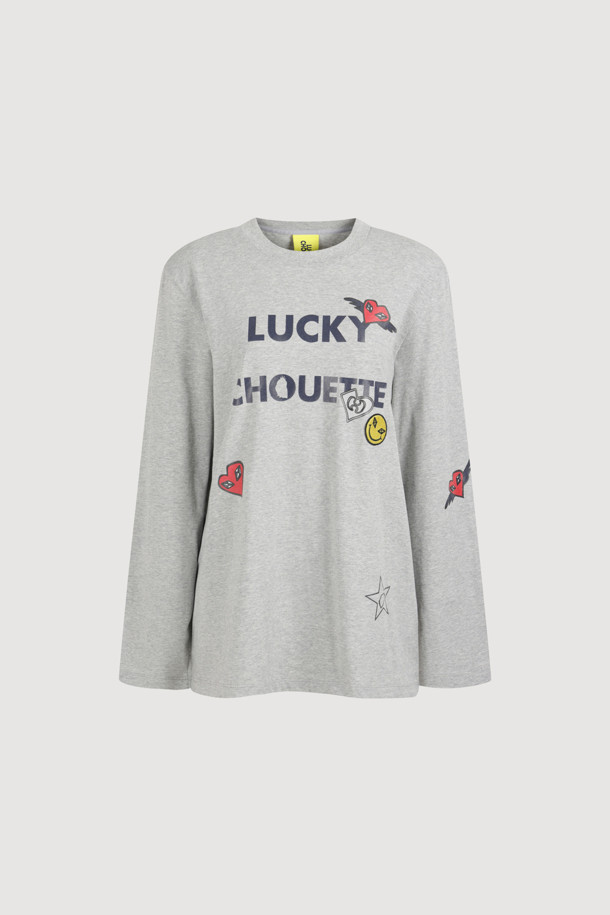 Lettering Point Loose Fit Long Sleeve T-shirt (melange grey)