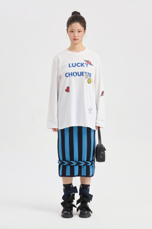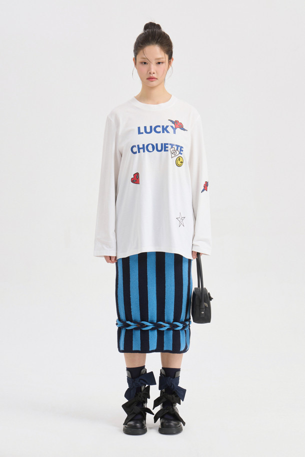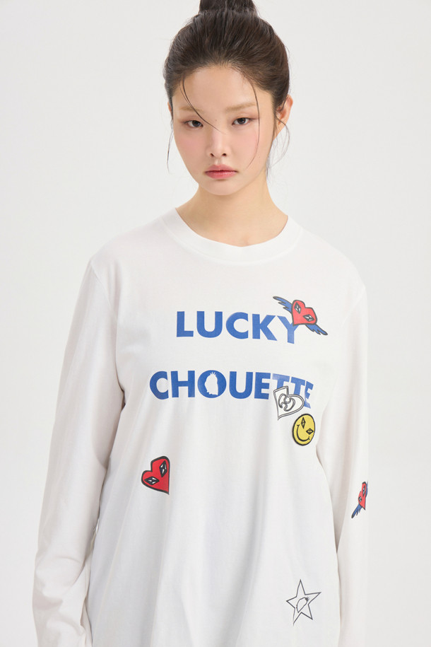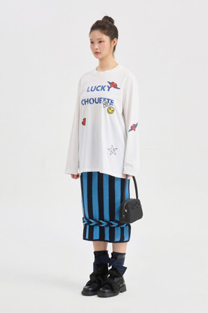 Lettering Point Loose Fit Long Sleeve T-shirt (white)