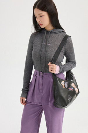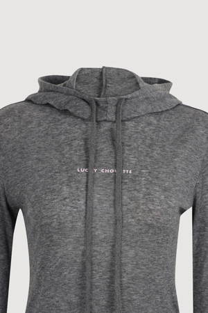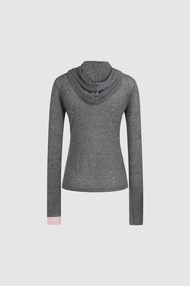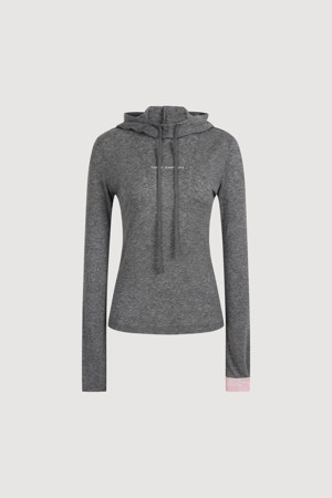 [Re-Order] Lettering Point Slim Fit Hood T-shirt (melange grey)