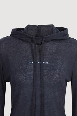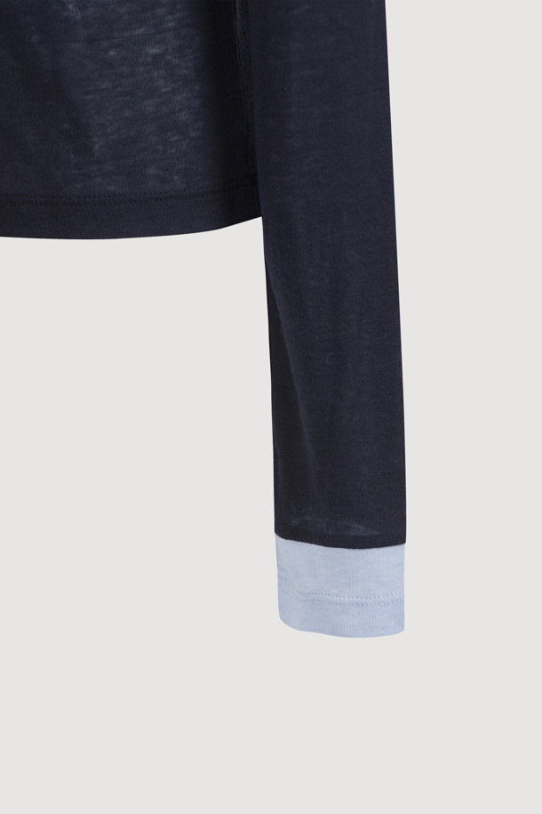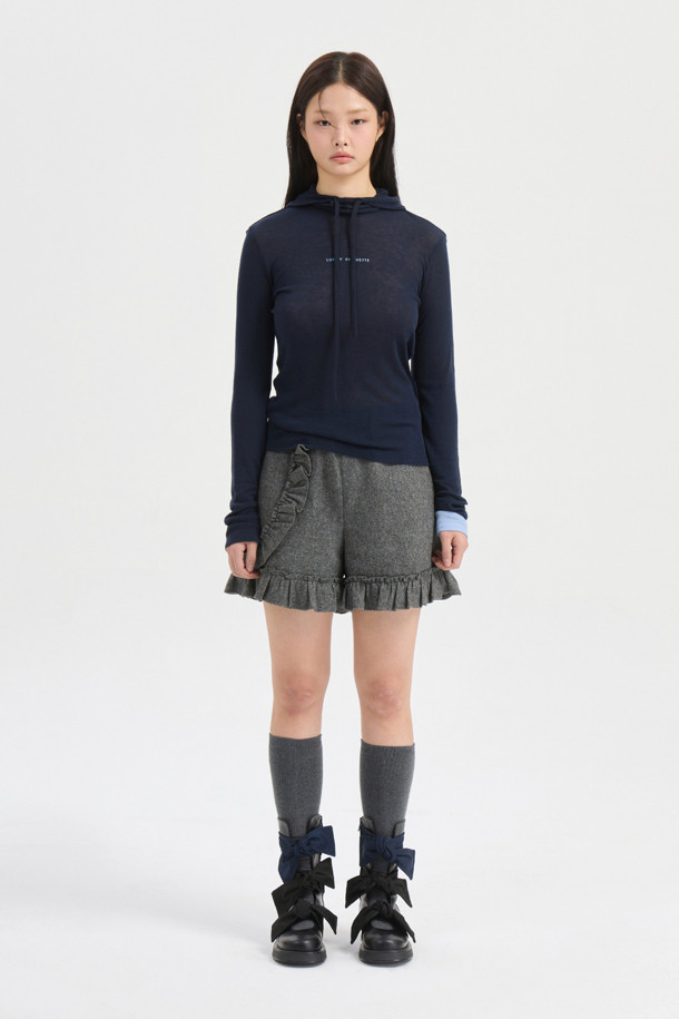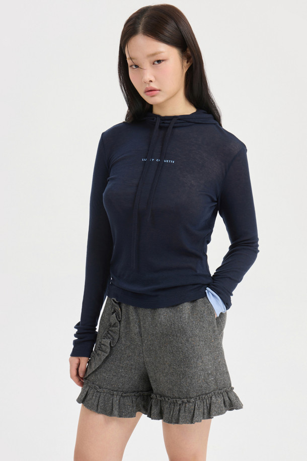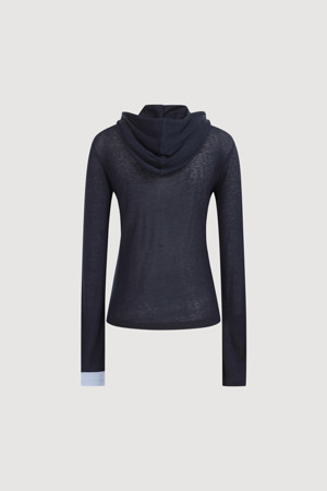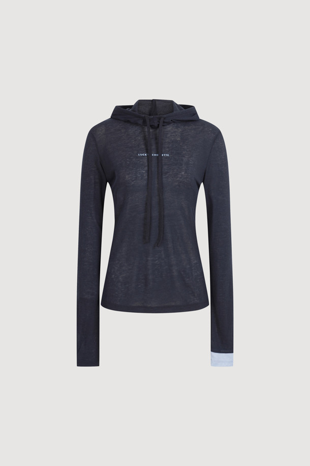 [Re-Order] Lettering Point Slim Fit Hood T-shirt (dark navy)