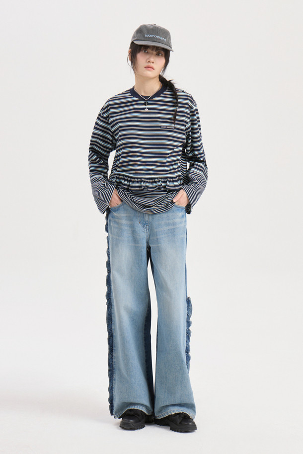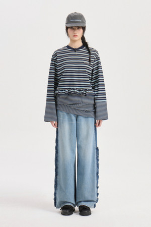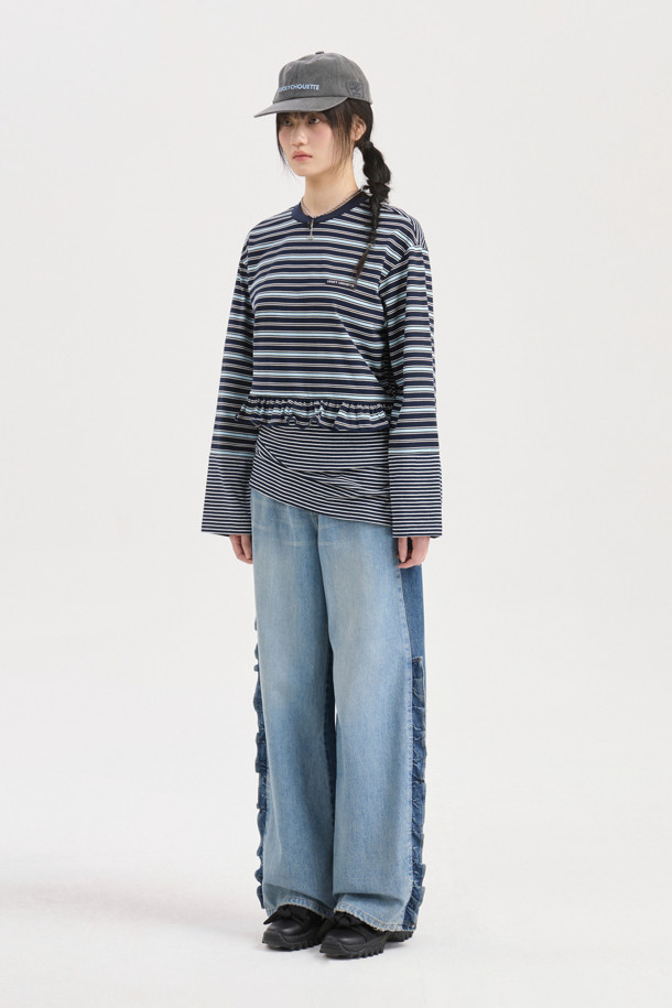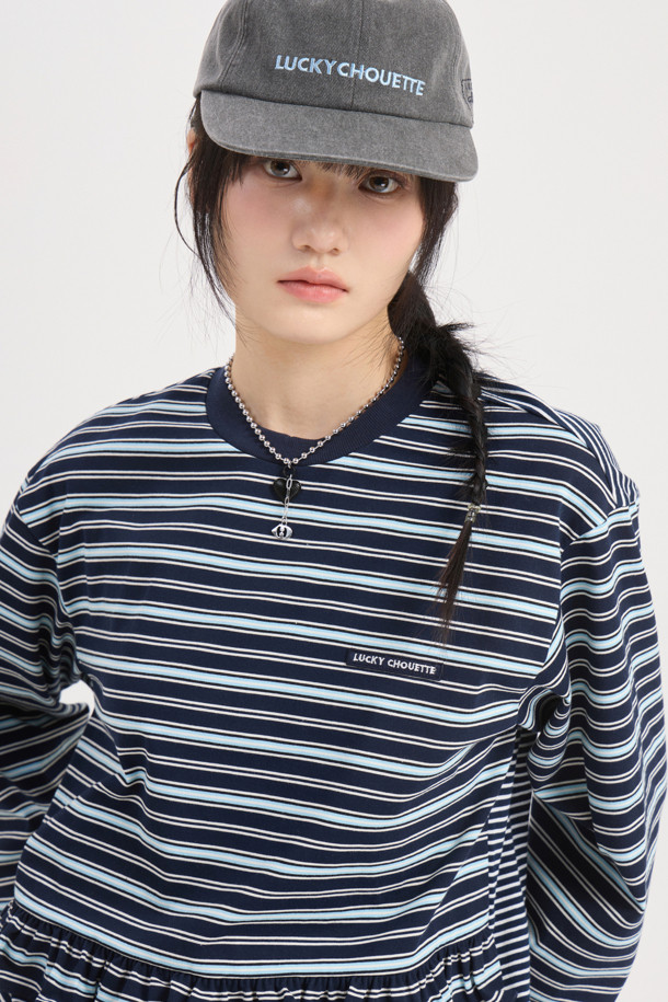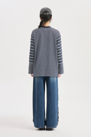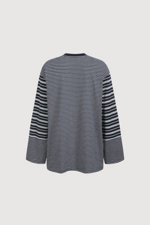 Stripe Mix Loose-fit Long Sleeve T-shirt (dark navy)