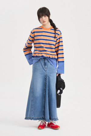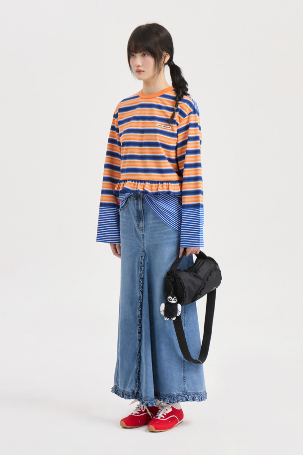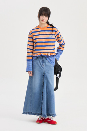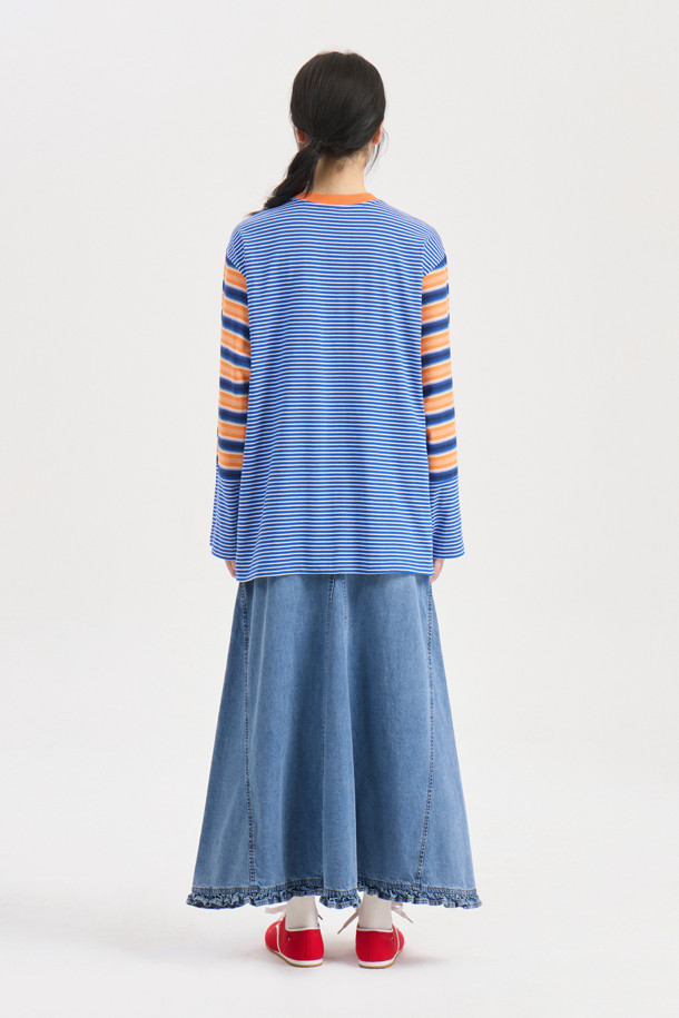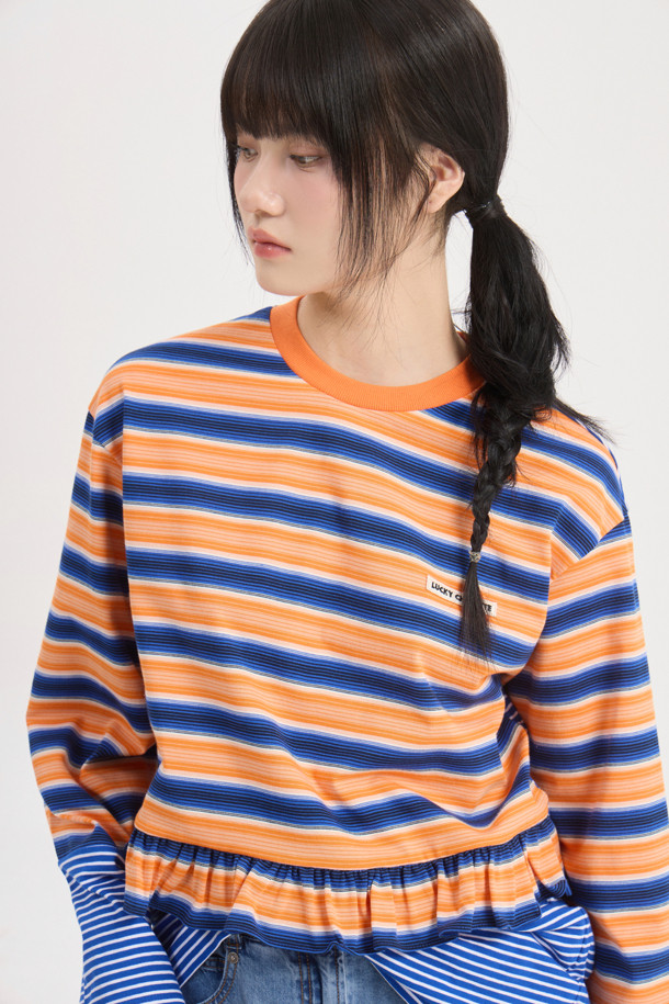 Stripe Mix Loose-fit Long Sleeve T-shirt (orange)