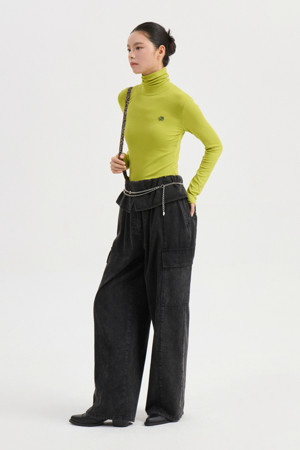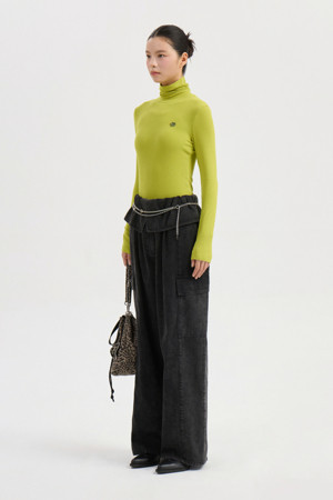 Ribbed Turtle Neck Long Sleeve T-shirt (lime)