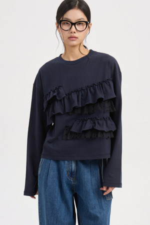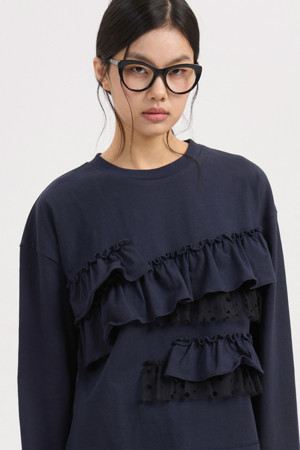 Frill Point Standard Fit Long Sleeve T-shirt (dark navy)