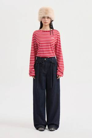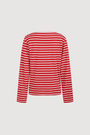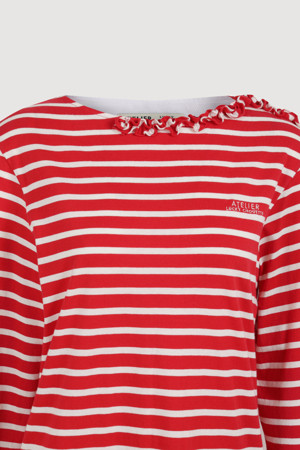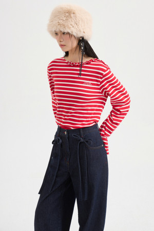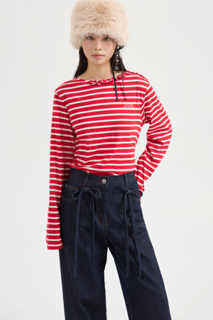 [Atelier] Frill Point Stripe Long Sleeve T-shirt (red)