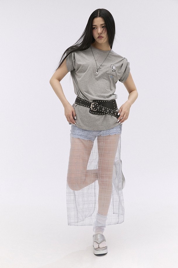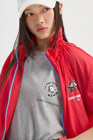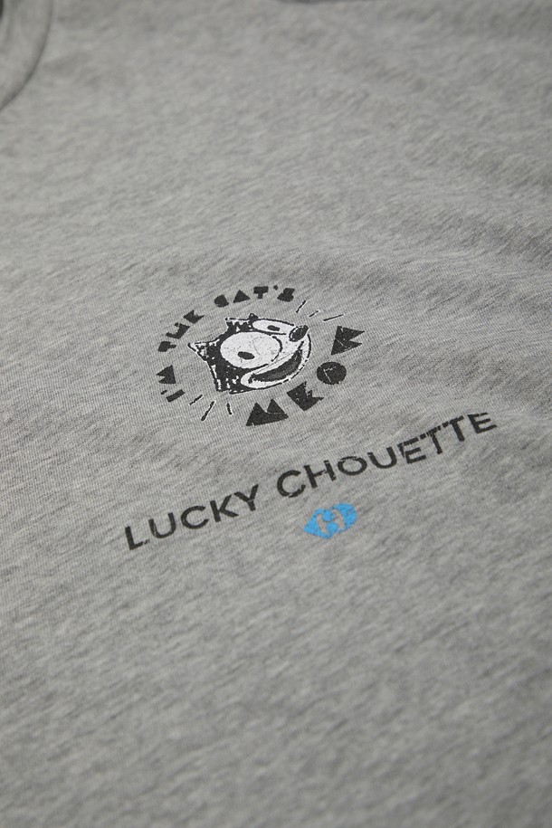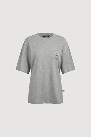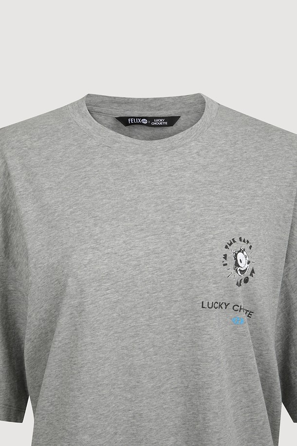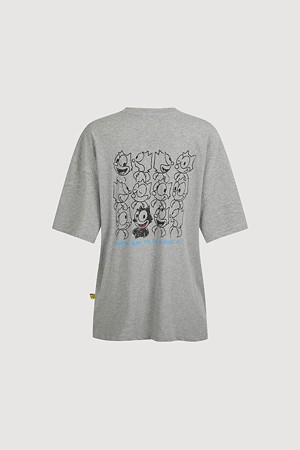 [FELIX X LUCKY CHOUETTE] Back Graphic Loose Fit Short Sleeve T-Shirt (melange gray)