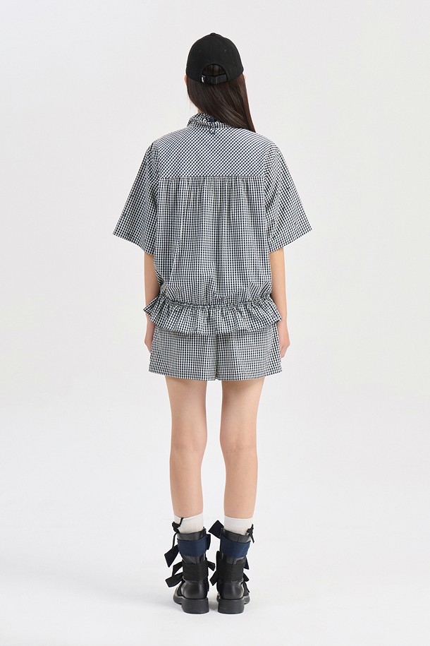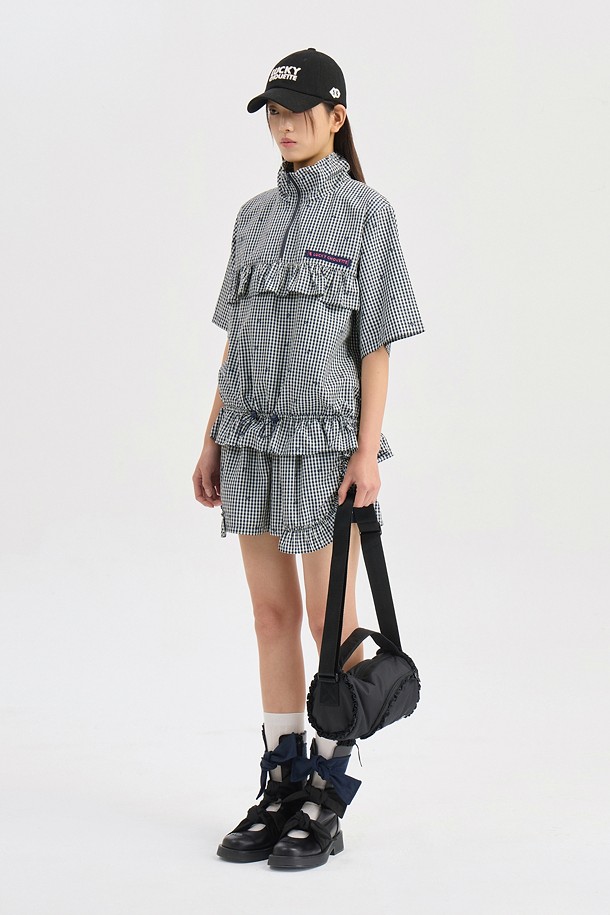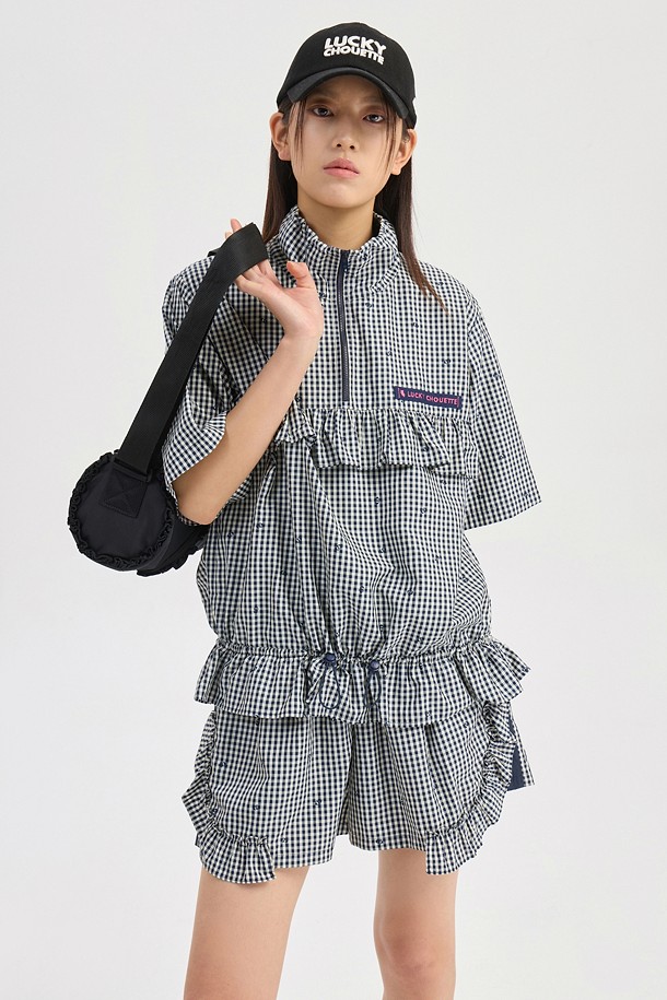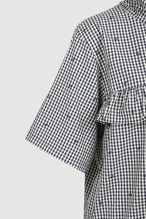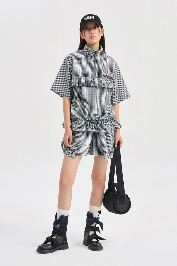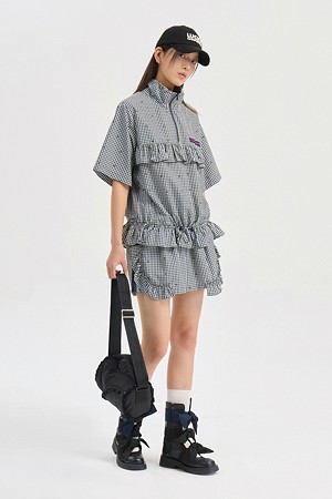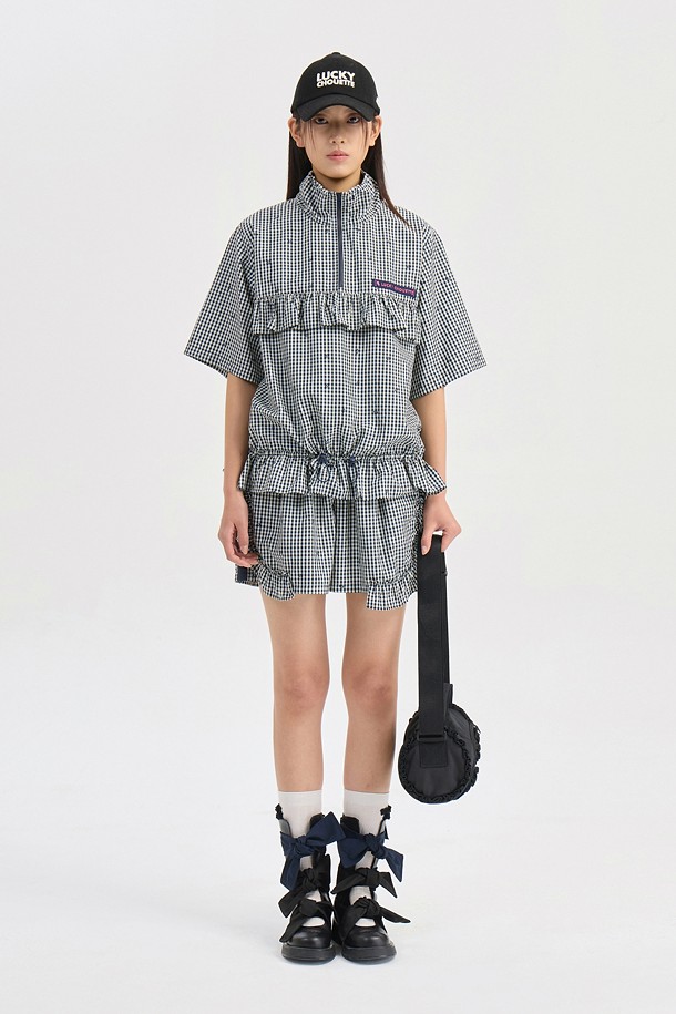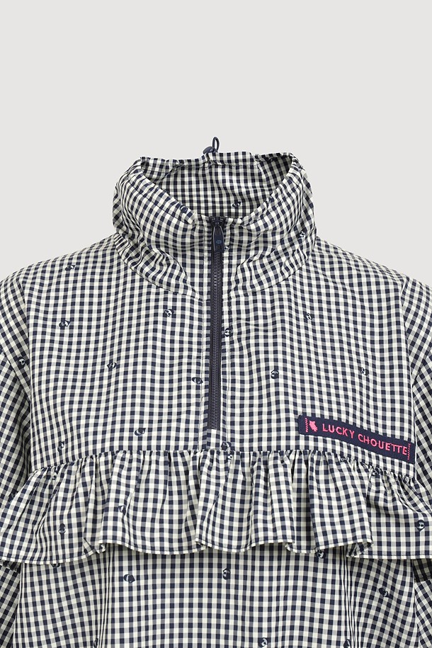 Frill Check Short Sleeve Anorak Jumper (navy)