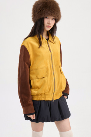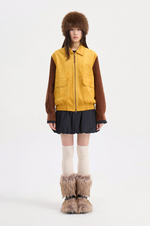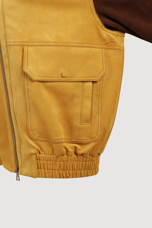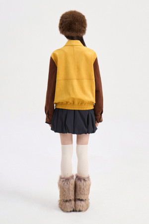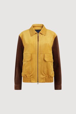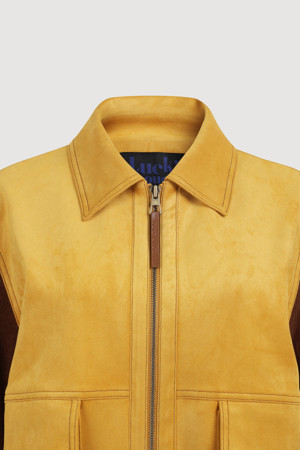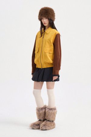 Corduroy Sleeve Fake Suede Jumper (yellow)