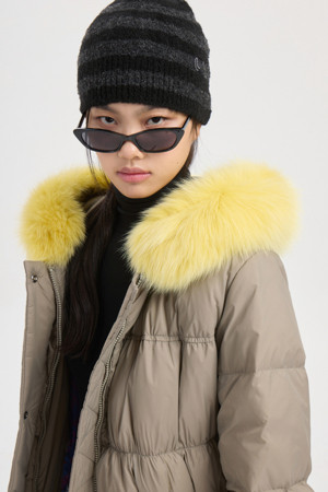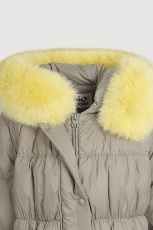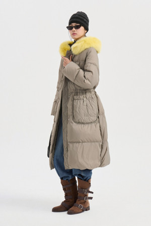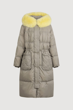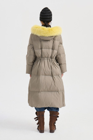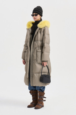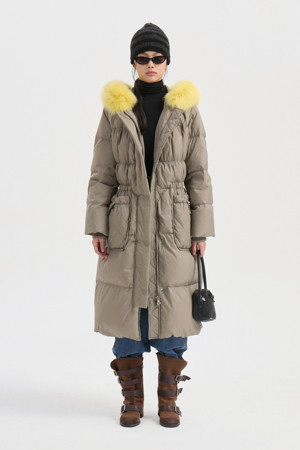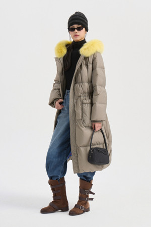 Fox Fur Hood Gooes Down Coat (light khaki)
