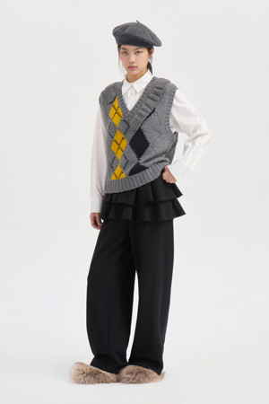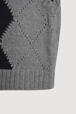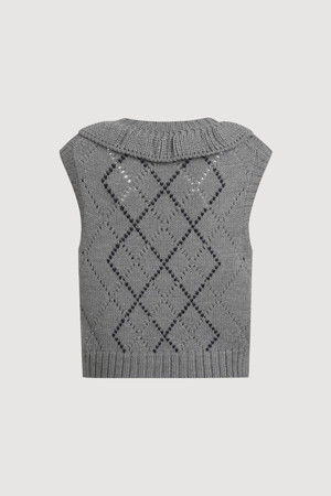 Argyle Frill Knit Vest (melange grey)