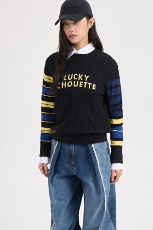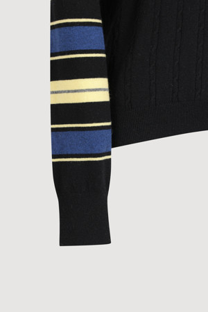Stripe Sleeve Slim Fit Knit Pullover (black)