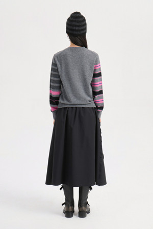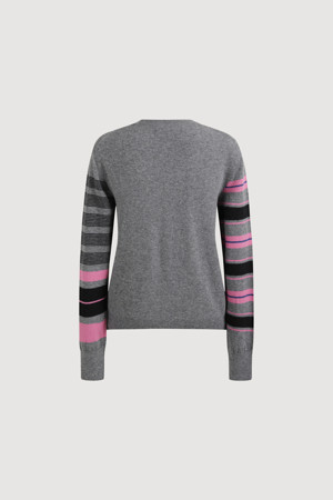 Stripe Sleeve Slim Fit Knit Pullover (melange grey)