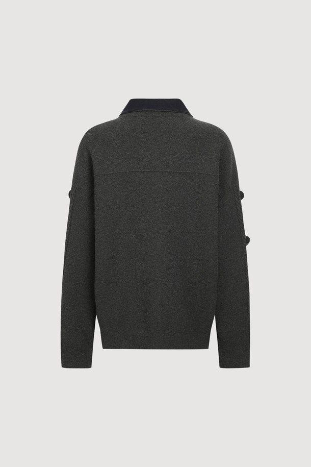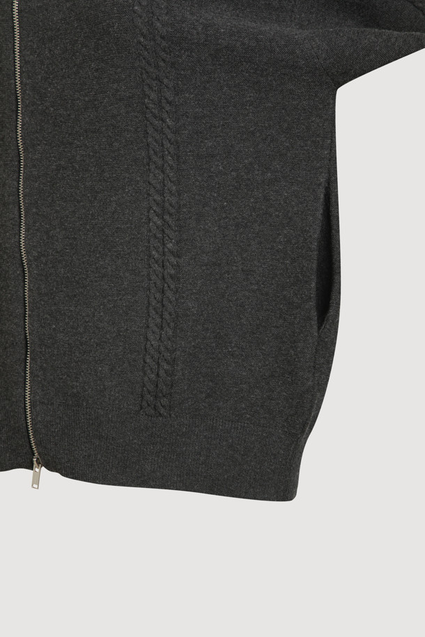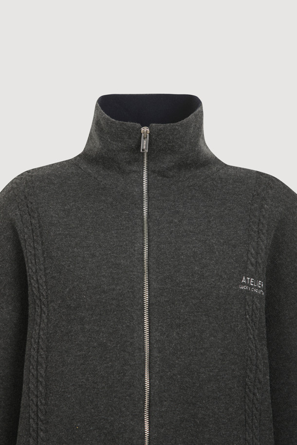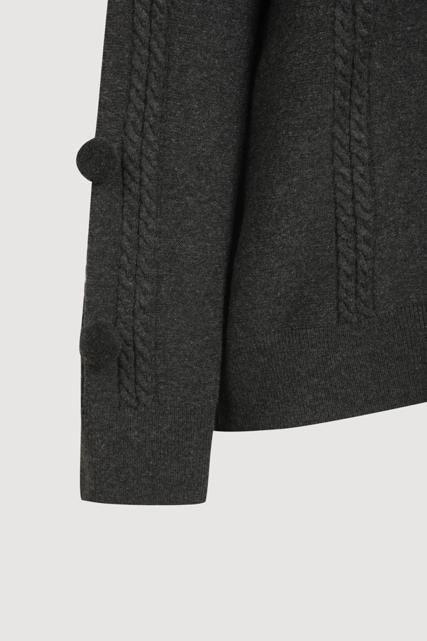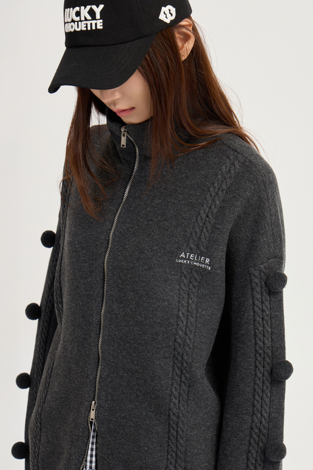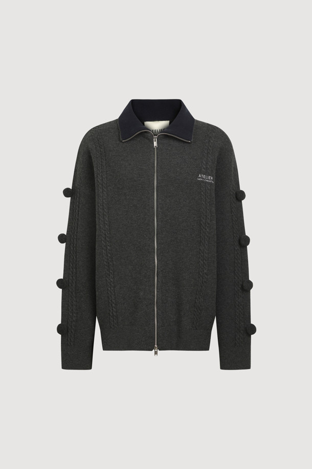 [Atelier] Pompom Zip-up Knit Cardigan (dark grey)
