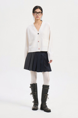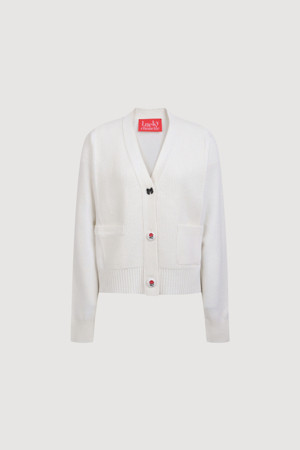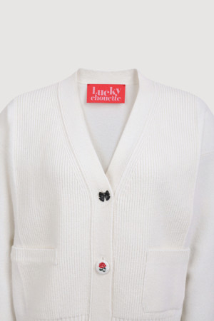 Embroidery Detail V Neck Knit Cardigan (ivory)