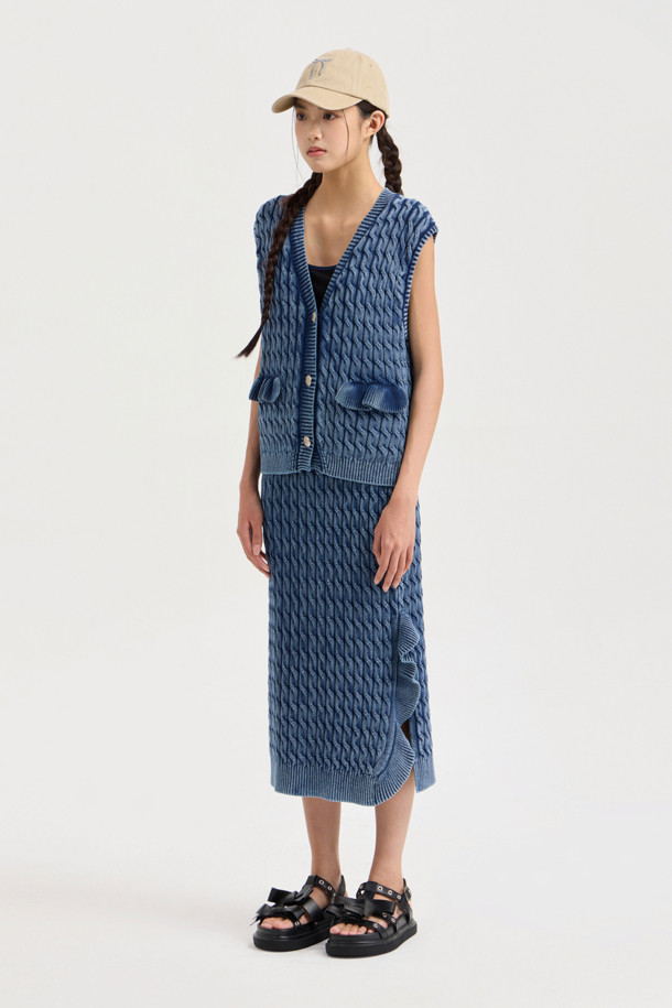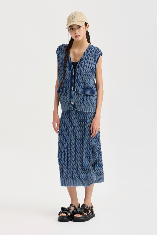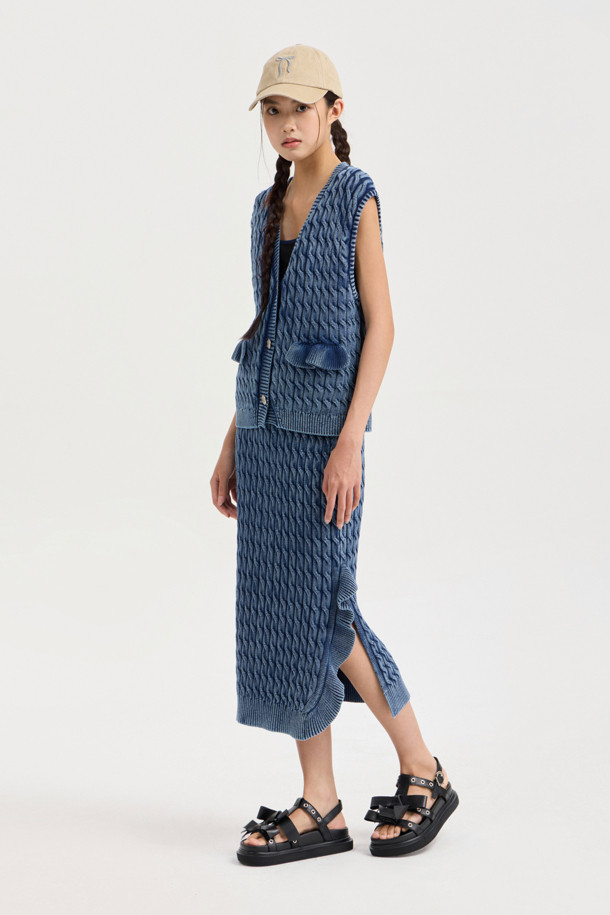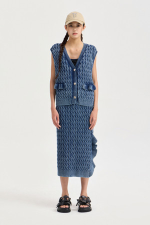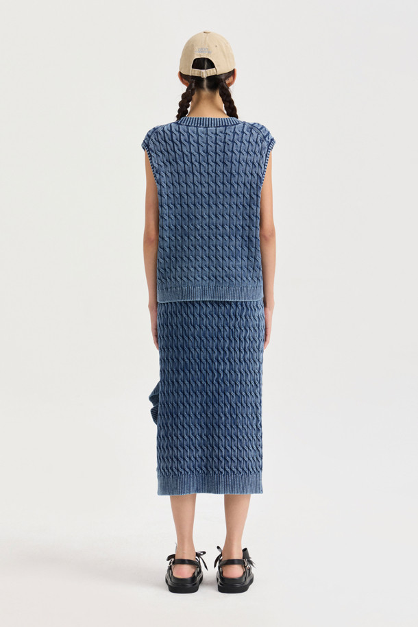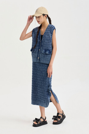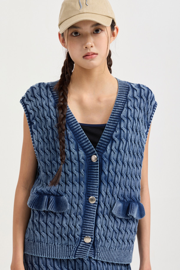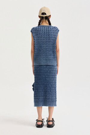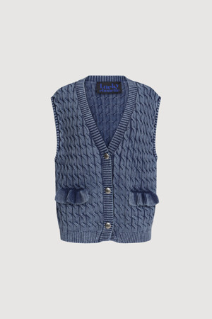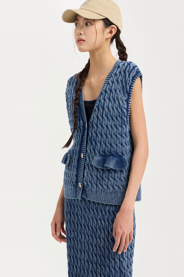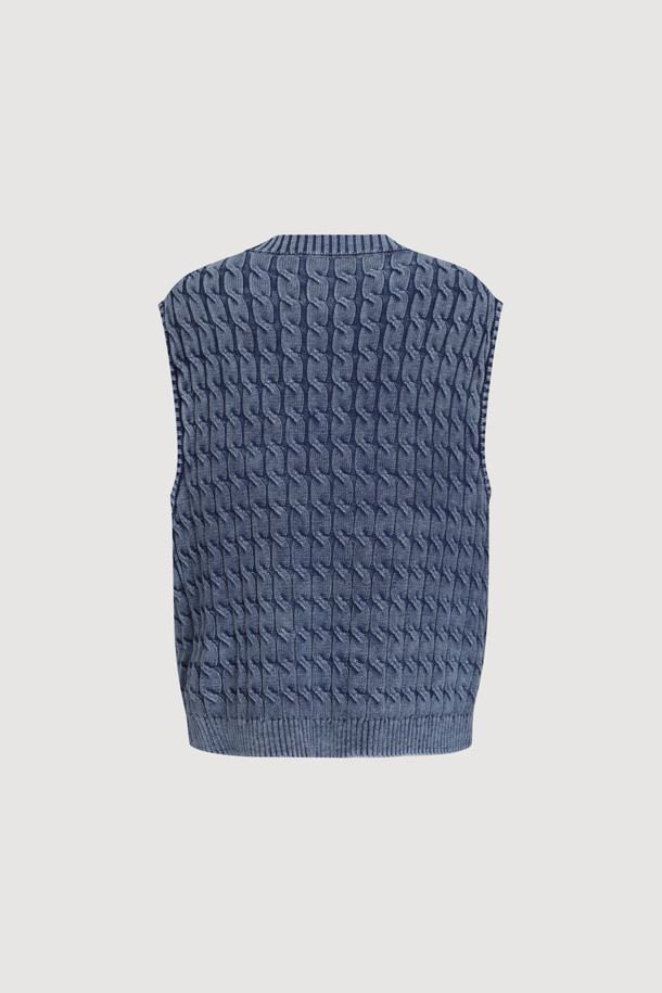Washed Cable Knit Vest (navy)