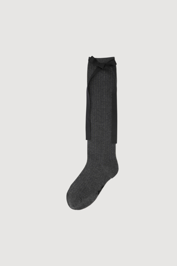 Ribbon Point Knee Socks (Dark grey)