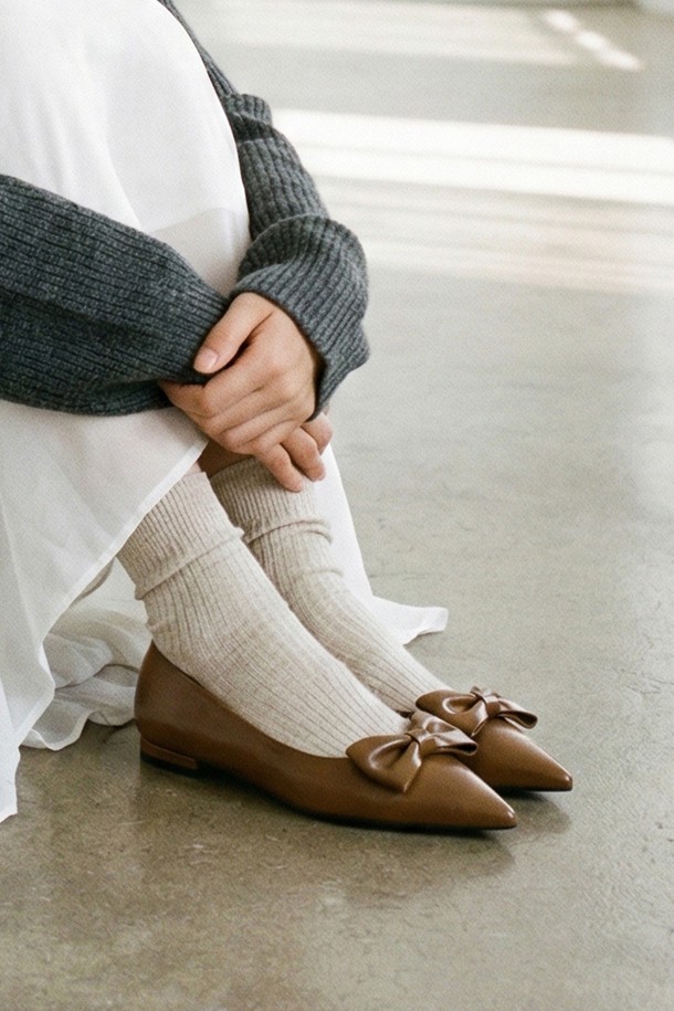 리본 포인트 스틸레토 플랫 슈즈 LC541_1cm