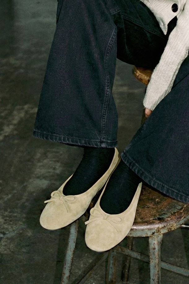 스웨이드 리본 발레리나 플랫 슈즈 LC547_1cm