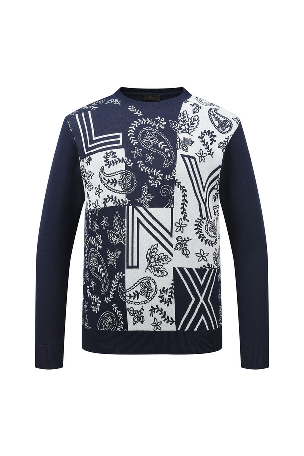 남성 페이즐리 패턴 라운드 넥 스웨터 L11E1SR221_NA