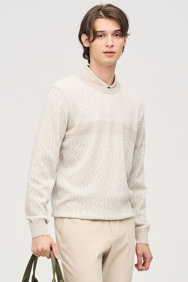 남성 로고 패턴 라운드 스웨터 L11E1SR322_BG