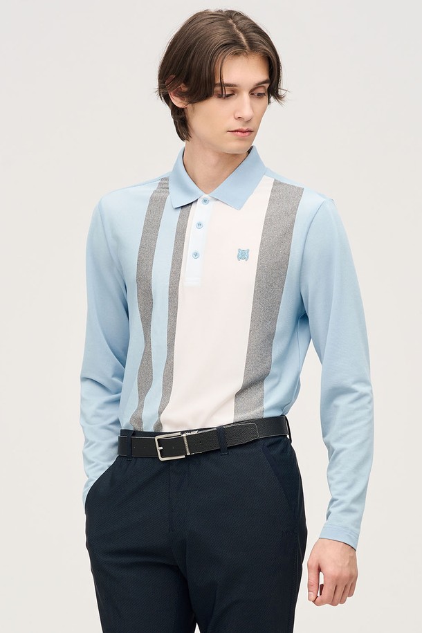 남성 세로 스트라이프 패턴 폴로 티셔츠 L11E1TO202_BL