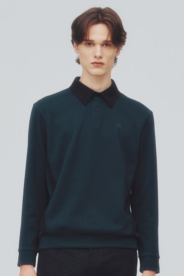 [25FW] 남성 사선 자카드 투톤 양면 기모 소재 니트 에리 티셔츠 L11E3TO103_GN