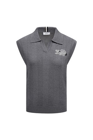 [26SS] 여성 세로 골 조직 카라넥 베스트 L21F1SV251_MG