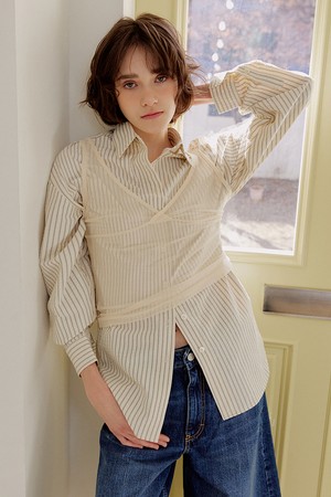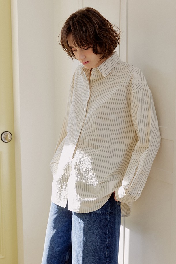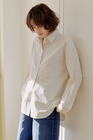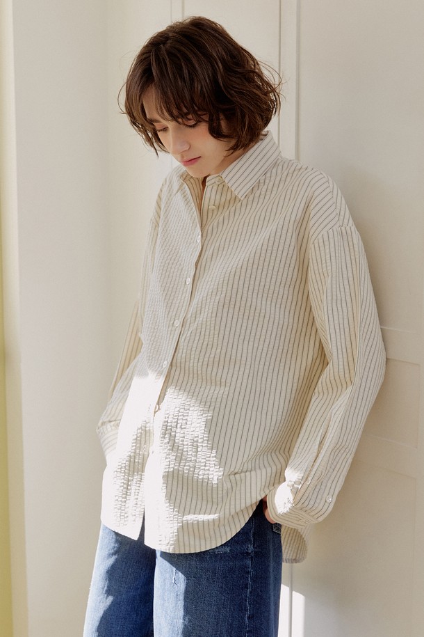 [2차 리오더]시어서커 오버핏 스트라이프 셔츠 [그린]