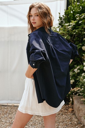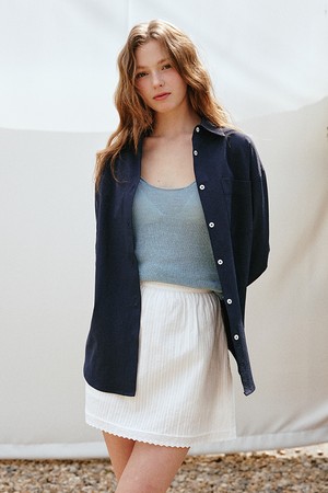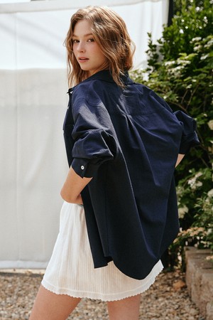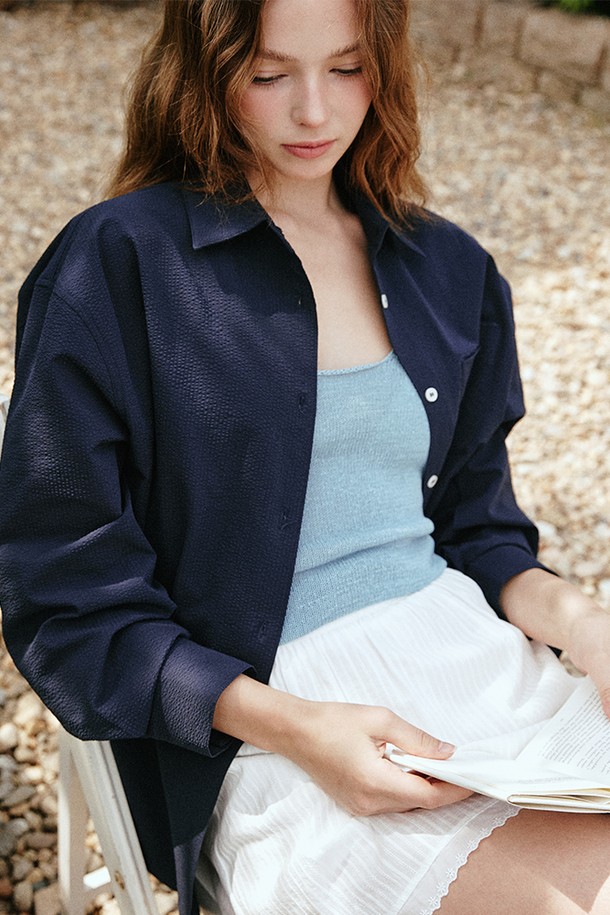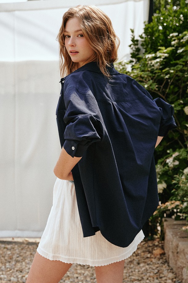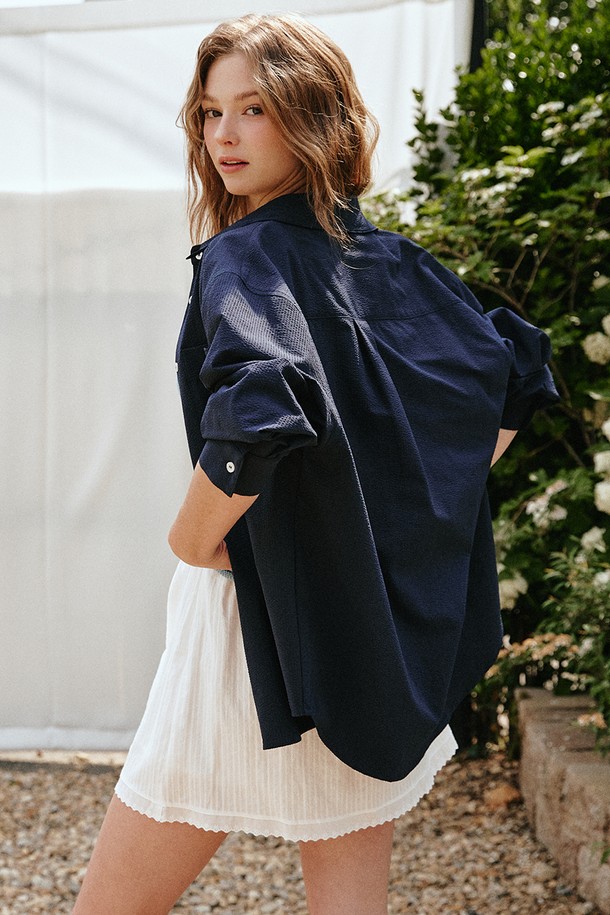 시어서커 오버핏 포켓 셔츠 [네이비]