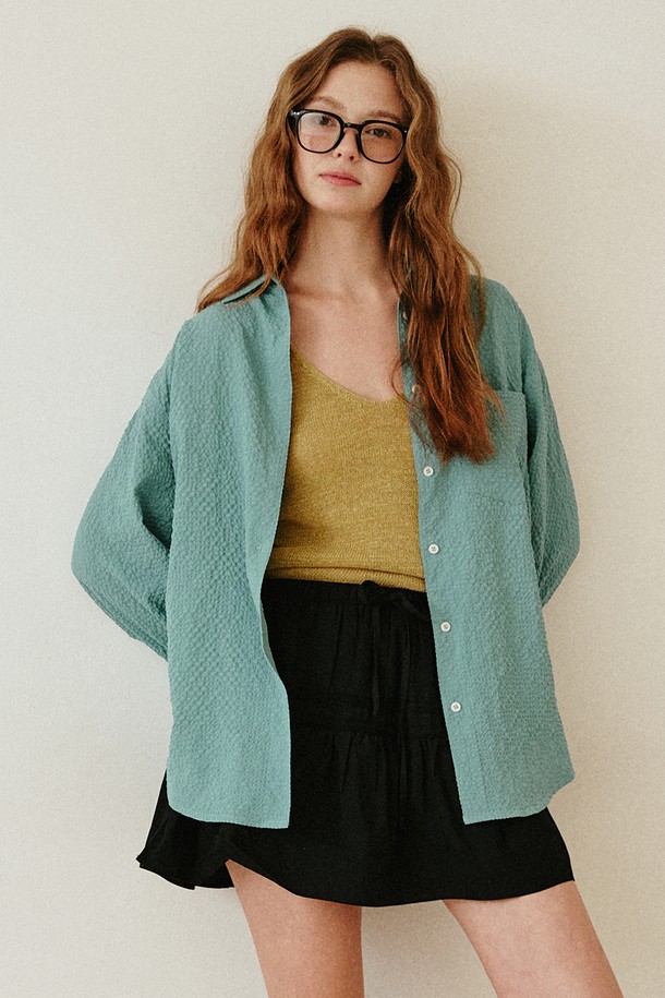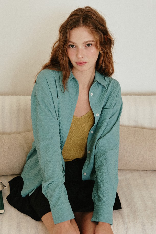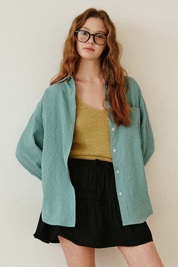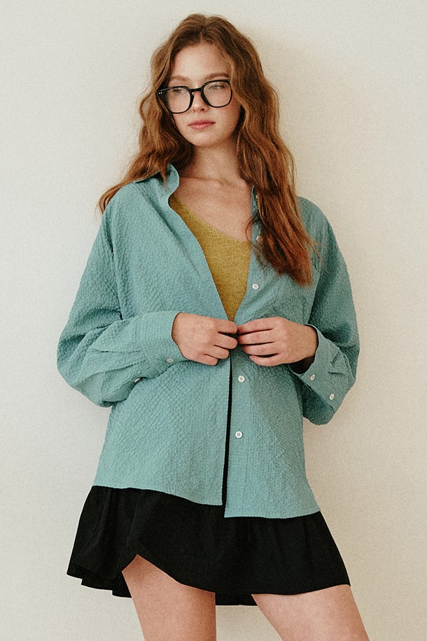 시어서커 루즈핏 엠보 셔츠 [그린]
