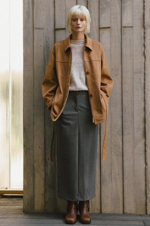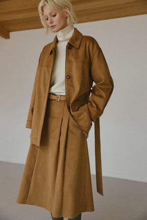 신세틱 스웨이드 벨티드 하프 자켓 [카멜]