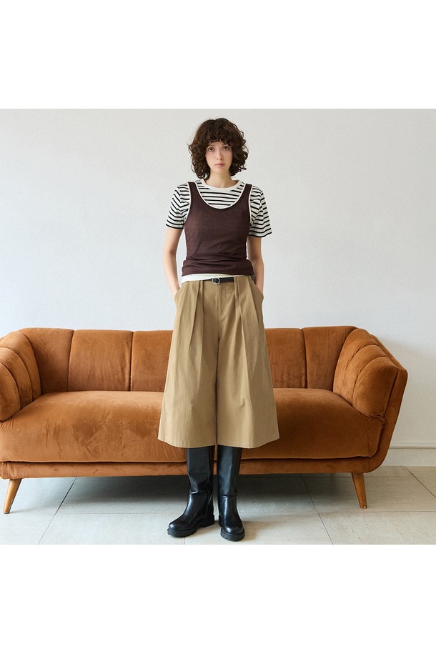 코튼 핀턱 버뮤다 팬츠 [베이지]