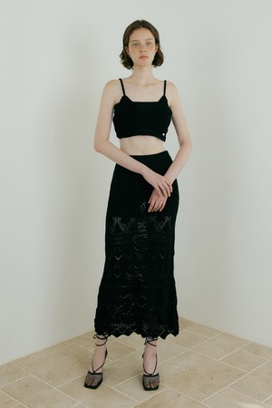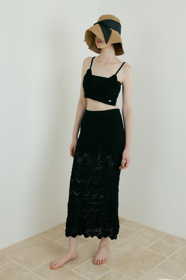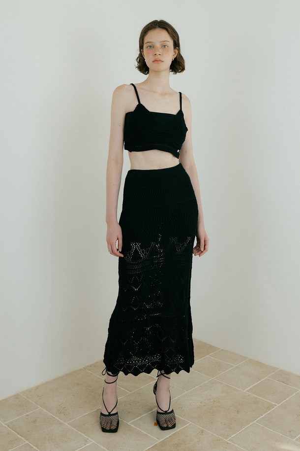 Weave Crochet Two-piece (Top & Skirt) (black)