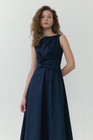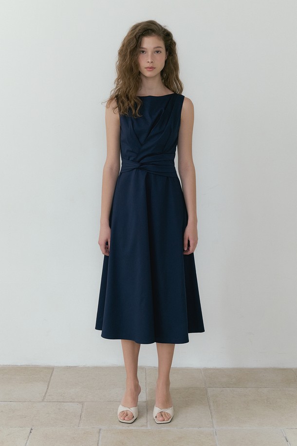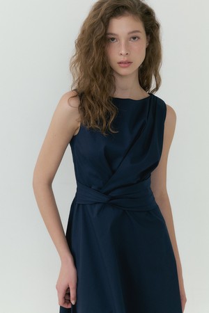 Waist-Twisted Sleeveless Dress (navy)
