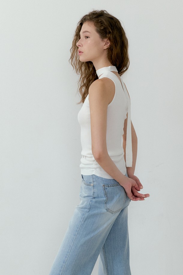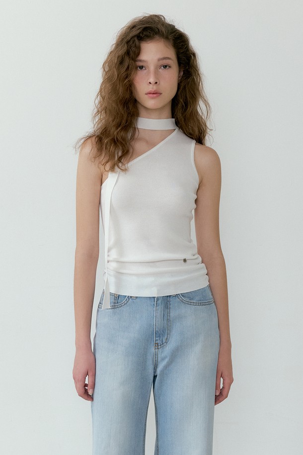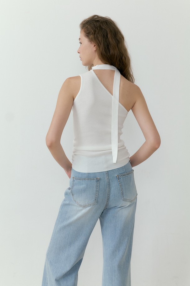 One-shoulder Scarf Sleeveless Knit (ivory)