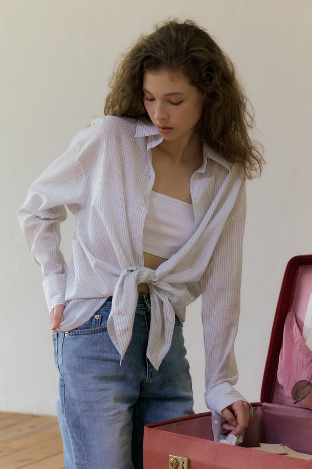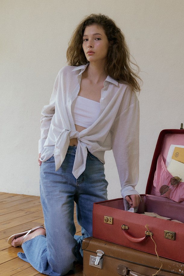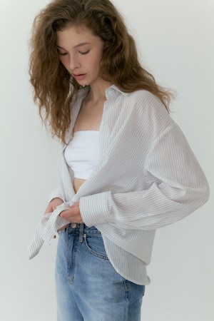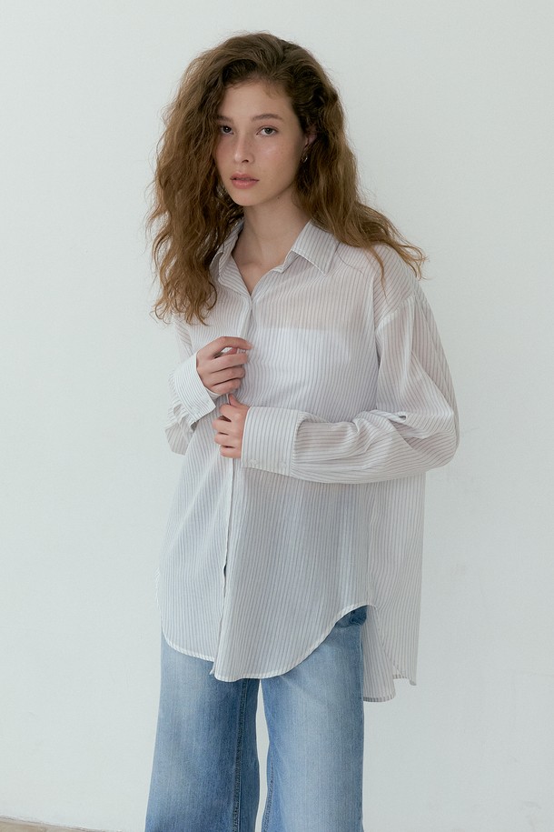 Cozy Stripe See-through Overfit Shirt (sky blue)