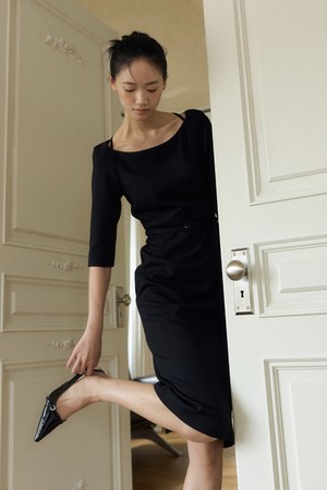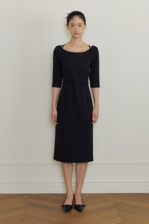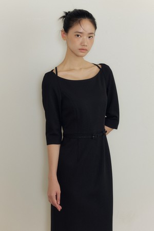 Thalia Belted Boatneck Dress (black)