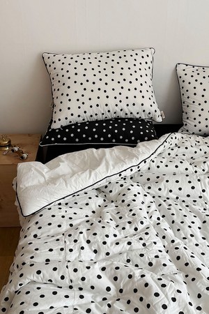 폴카 도트 화이트 블랙 겨울 차렵이불 베개커버세트 Q