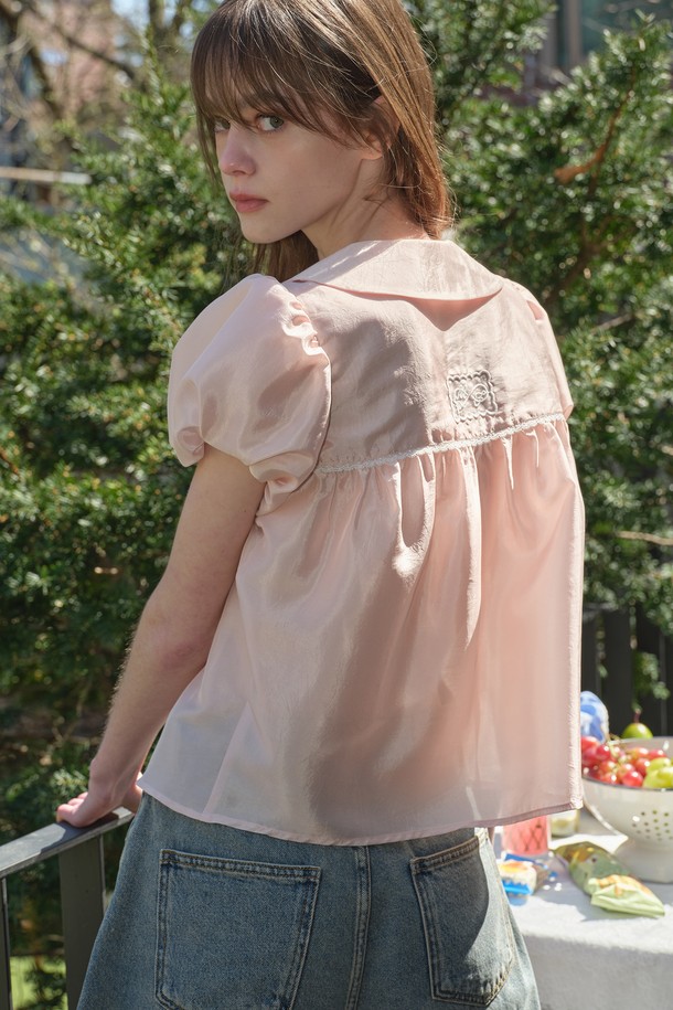 [25MID CAPSULE] SHEER PUFF BLOUSE (PEACH)