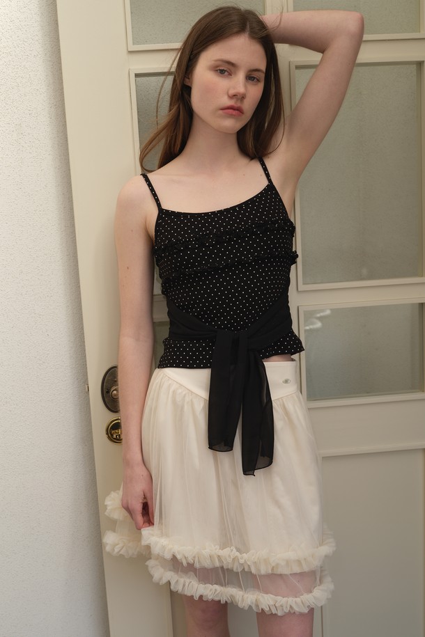 [25MID CAPSULE] FRILL RIBBON TANK TOP (BLACK)